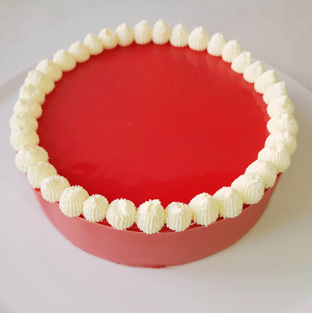 Une mousse légère au fruit de la passion, un insert de confiture de framboise et une génoise croustillante au chocolat blanc